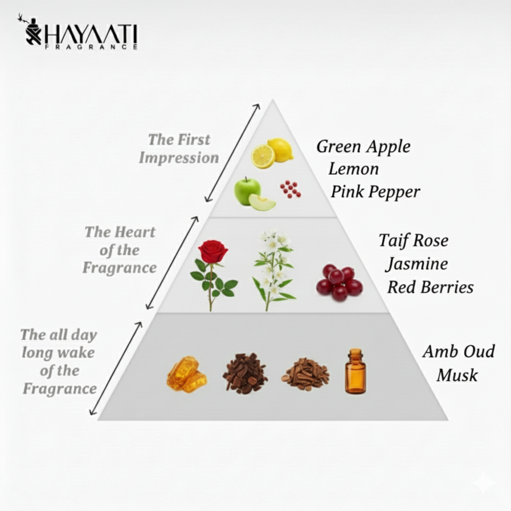 Base Notes: The rich, musky base is a blend of oud and sandalwood, which linger on the skin, creating a smooth, warm, and deeply satisfying finish. These earthy and woody notes provide an enduring sense of mystery and sophistication, making the fragrance perfect for evening wear or special occasions.